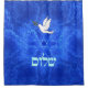 Features "shalom" (Hebrew "peace") and a dove carrying a bit of olive branch in its beak on a nice blue and white fractal background which is reminiscent of birds wings. There is also a small Star of David (Magen David) in the centre.