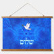 Features "shalom" (Hebrew "peace") and a dove carrying a bit of olive branch in its beak on a nice blue and white fractal background which is reminiscent of birds wings.