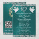 Dove, Silver Heart & Glitter, QR Code - Teal Invitation
