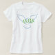This beautiful t-shirt features a blue and white flying dove carrying an olive branch on the front. The text on the back of this shirt can be personalized with your choice of special wishes.