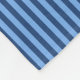 Winter themed fleece blanket with a quilt-like design of two turtle doves, snowflakes, and vertical and horizontal stripes, in light blue, dark blue and white.