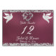 This romantic design features an elegant lavender background with glitter borders, heart & doves with a place for the table number, couple's names and date of event. Available in several colours for your wedding theme. (Glitter is simulated in the artwork). Designed to coordinate with the "Two Shall Become One - Doves, Heart & Glitter" Wedding Collection. To change details, click «Personalize». To move the text or change the text size, font, or colour click «Click to customize further».