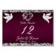 This romantic design features an elegant plum background with glitter borders, heart & doves with a place for the table number, couple's names and date of event. Available in several colours for your wedding theme. (Glitter is simulated in the artwork). Designed to coordinate with the "Two Shall Become One - Doves, Heart & Glitter" Wedding Collection. To change details, click «Personalize». To move the text or change the text size, font, or colour click «Click to customize further».