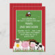 This cute birthday party invitation features a barnyard scene with farm animals and a farm tractor.