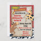 Cute and modern Farm or Barn Birthday party invitations with a horse and cow, fun graphics, a cowbell to place you child's age all on old paper against red barn wood and cow pattern background. Hand drawn illustration by McBooboo. Please contact me with any problems or custom work!