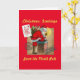 This vintage Santa Claus is going down the chimney with a bag full of toys. The design includes a North Pole and SPECIAL DELIVERY stamps. This card can be personalized and has a companion envelope that can also personalized.