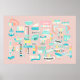 Add the perfect finishing touch to the walls of your shore home with this fun poster. Motel signs in pastel colours inspired by mid-century roadside attractions depict the names of a variety of Jersey shore destinations. Inspired by my own childhood family vacation memories of heading down to the shore to enjoy a day at the beach and a stroll along the boardwalk. This fun pattern features vintage style signs for: Asbury Park, Atlantic City, Avalon, Avon-by-the-Sea, Bay Head, Beach Haven, Belmar, Bradley Beach, Brigantine, Cape May, Deal, Island Beach State Park, Lavalette, Long Beach Island, Long Branch, Manasquan, Mataloking, Margate City, Monmouth Beach, North Wildwood, Ocean City, Ocean Grove, Ortley Beach, Point Pleasant, Sandy Hook, Sea Girt, Sea Isle City, Seaside Heights, Seaside Park, Ship Bottom, Spring Lake, Stone Harbour, Surf City, Ventnor City, Wildwood Crest and Wildwood.