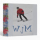 Skiing is the Sport for Anyone! .. Down Hill ski with a Team or for pleasure .. this Skier wearing a bright Red Jacket wearing orange goggles and blue jeans … jumping thru snow powder and moguls .. a Gift for team-mates, coaches, friends or family – Visit www.fancifulwatercolors.ca