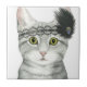 This watercolor print features a tabby cat adorned with lace and feathers| By Grace Popp
