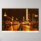 Downtown Buffalo NY at Night Vintage Poster