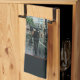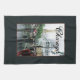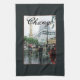 Vintage inspired old fashioned downtown Chicago by Water Tower Place on a foggy day kitchen towel.