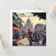 Comic book style ai illustration of downtown area of Kolkata, India Parked motor bikes and cards. A card with an illustration of busy downtown street with buildings, restaurants, shops and people on their motor bikes.