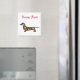 Great Dachshund lover magnet, with a colourful flower decorated brown Dachshund and text above reading, Doxies Rule. Great little gift magnet for any wiener dog lover.