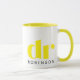 Celebrate professional achievements in style with this sleek and modern "dr" mug, featuring bold typography and a customizable name beneath. The yellow and white design, accented with a contrasting yellow interior and handle, makes it a perfect gift for doctors, PhDs, or anyone with a well-deserved title. Whether for a graduation, promotion, or just as a thoughtful token of recognition, this personalized mug is a chic and meaningful way to honor hard work and success. 💡 How to Customize: - Click "Personalize this template" to add the name. - Want more changes? Choose "Edit using Design Tools" to adjust font type, color, or layout.