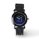 The design on this eWatchFactory Glitter Watch is a curling blue spikey dragon difts above flames of blue in front of a night sky with the Draco star constellation.