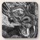 A dragon lurks in a cave deep underground. Coaster set with a black and white customizable design for you to personalise with your own text, pictures and ideas. An original ink drawing by Jess Perry.