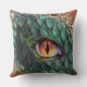 This enchanting custom pillow features a mythical fantasy theme. A large dragon eye is pictured in the centre, surround by glowing scales and gold textures.