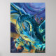 Calling all dragon lovers! Dragon Rider art is a dramatic fantasy painting by Traci Van Wagoner featuring a blue green dragon in a dramatic flying pose with a rider in red holding a staff high on his back with a child rider behind. Bring a bit of whimsy to your home or office with this fantastical dragon scene.