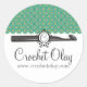 Pretty circles pattern a la dragon scales with a crochet hook and fancy schmancy monogram in black and grey on business cards, stickers, crochet pattern idea notebook or binder, gift cards and more for crochet pros or gifters of handmade goodies.
