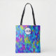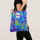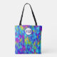Dragon scales in jewel tones of blue, magenta, yellow, and green create a beautiful and luxurious tote bag.