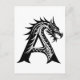 Dragon Styled Letter A, Dragon Alphabet, Monogram Postcard