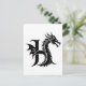 Dragon Styled Letter H, Dragon Alphabet, Monogram Postcard