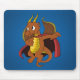 Mousepad with illustration of an orange super hero dragon in red cape flying, fantasy design for kids
