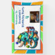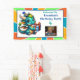 Blue, green, yellow and orange dragon themed boy's birthday party personalized photo banner. Cute for any little boy who loves dragons! Cute cartoon dragons in birthday hats holding birthday cakes.