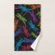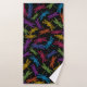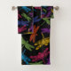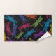 DES DRAGONS COLORÉS EN ROUGE, VERT, BLEU ET ROSE VOLENT AII-OVER SUR ARRIÈRE - PLAN NOIR DANS LA CONCEPTION MOTIF ABSTRAITE