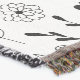 Dragonfly and various flowers and leaves. Doodle vector pattern in black and white.