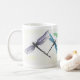 This is a coffee or tea mug with my watercolor dragonflies printed on it inspired by the many dragonflies that visit our farm every year.