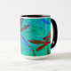 Gorgeous red and blue dragonflies on a mottled turquoise blue and green background. From my original dragonfly artwork. LyndseyArt