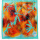 Gorgeous turquoise winged dragonflies on a vibrant mottled orange background.