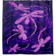 Goregous pink winged dragonflies flit on a vibrant disco purple background.