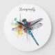 Mark the passage of time with exquisite beauty and a touch of whimsical artistry with our "Dragonfly Dreamscape" Custom Clock. This enchanting timepiece features the captivating watercolor dragonfly, poised gracefully amidst a dreamy splash of vibrant colours, transforming an essential household item into a captivating piece of wall art.