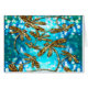 Gorgeous golden dragonflies on a bubbly blue and green background.