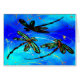 Gorgeous metallic dragonflies on an electric blue background.