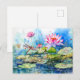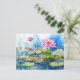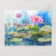 Dragonfly flying through pink water lilies holiday postcard
