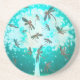 I'm not sure how much moisture these will soak up, haven't had a chance to try them out, but they look good and I like the cork backing. The printing is fine ~ and really looks cool with an artisan's hand made "Hurricane Martini" glass sitting on top of my painting (on the coaster) in my studio.