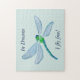 A watercolor of a lovely, blue and green dragonfly adorns this puzzle! Customize by adding or changing text and the background colour to suit yourself.