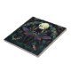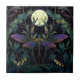 Introducing the Dragonfly Moon Tile from the Swamp Collection. This decorative 4.25 x 4.25 inch ceramic tile features an intricately detailed dragonfly design in art nouveau style. The vivid purple, emerald green, golden yellow, and jet black motifs have an almost ultraviolet quality. Part of a set of 12 Gothic-inspired tiles with bats, frogs, and other swamp creatures. Perfect for kitchen backsplashes, bathrooms, and accent walls. The nature-inspired dragonfly tile adds an elegant yet edgy ambiance. Made from durable printed ceramic tile that's water-resistant and easy to clean. Bring intrigue and allure to your space with this singular dragonfly accent tile!