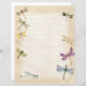 Pretty watercolor Dragonfly Stationery lined writing paper.