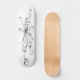 A black and white dragonfly tattoo style skateboard deck.