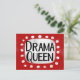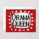 "Drama Queen" is a cute text design in red with black text, along with a white accent shape and white textured whimsical dots surrounding it.