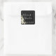 Dramatic, elegant wedding seal features watercolor white daisies corner on black background with white customizable text blocks in modern fonts