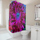 This Colourful Floral Shower Curtain features a Dramatic, Abstract, Crimson Red, Purple and Black Dahlia Flower with Trippy Aquamarine, Black and Blue Accents. The result is a colourful, bold, floral painting that you will love!
