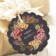 Scalloped edge round favour tags featuring elegant watercolor flowers in pink and gold with beautiful greenery on a dark purple brown background, these tags feature your names on the front and thank you message on the back. Perfect for bridal showers favours, wedding favours or any wedding event and more. MATCHING items in our store.