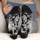 These socks have a monochrome toile pattern with a depth like carved marble glowing in a black night.