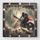 Dramatic Motorbike Escape Through City Debris Square Wall Clock