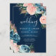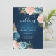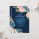 Dramatic Navy Blue and Blush Floral Boho Glitter Invitation